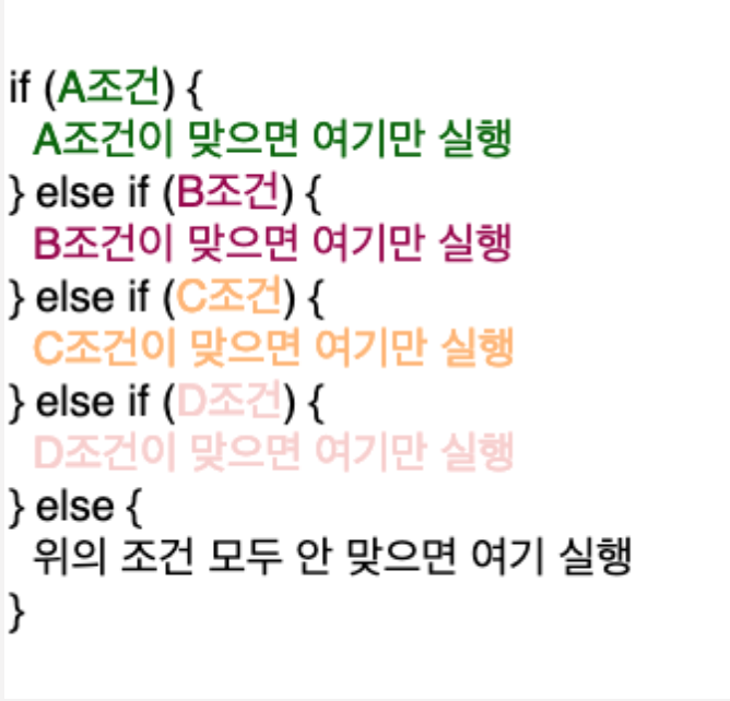 아래와 같이 else if문도 있다. A, B, C조건 등등 여러 조건을 설정할 수 있다.