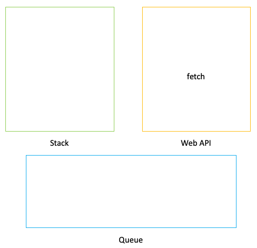 Web API에서는 fetch에 정해놓은 웹사이트를 부를 것이고, 돌아왔을 때 함수는 Queue로 이동하게 된다.
