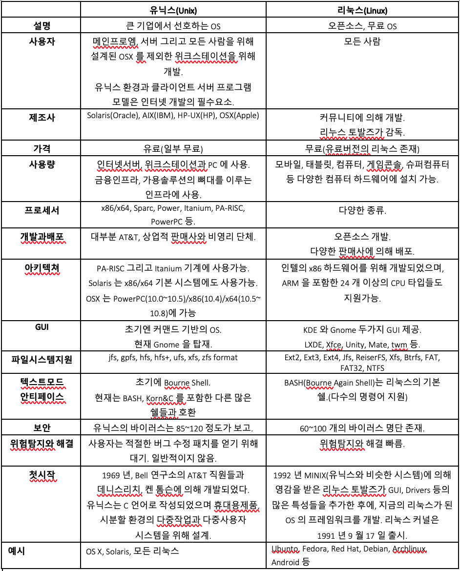 유닉스와 리눅스 차이 한눈에 보기